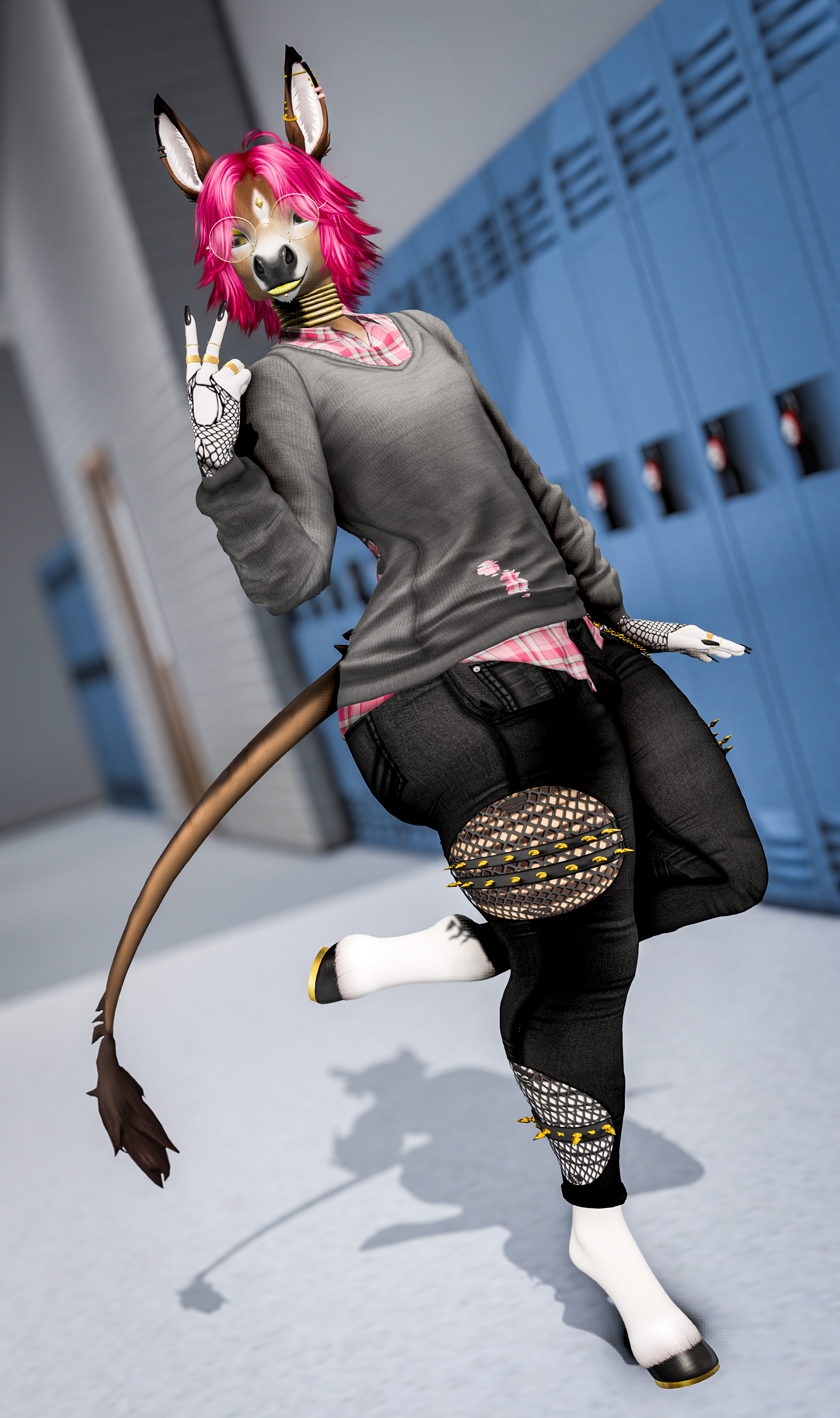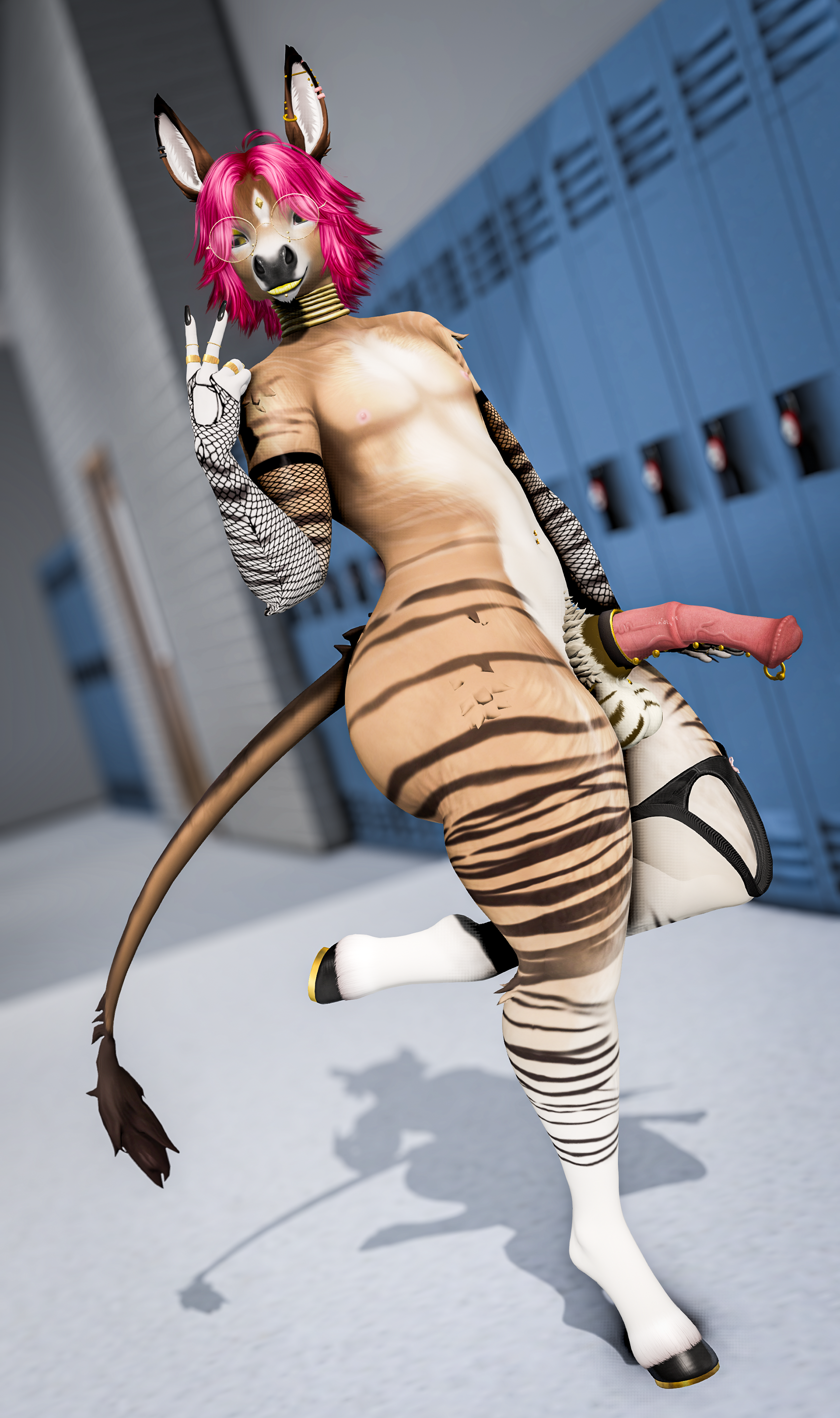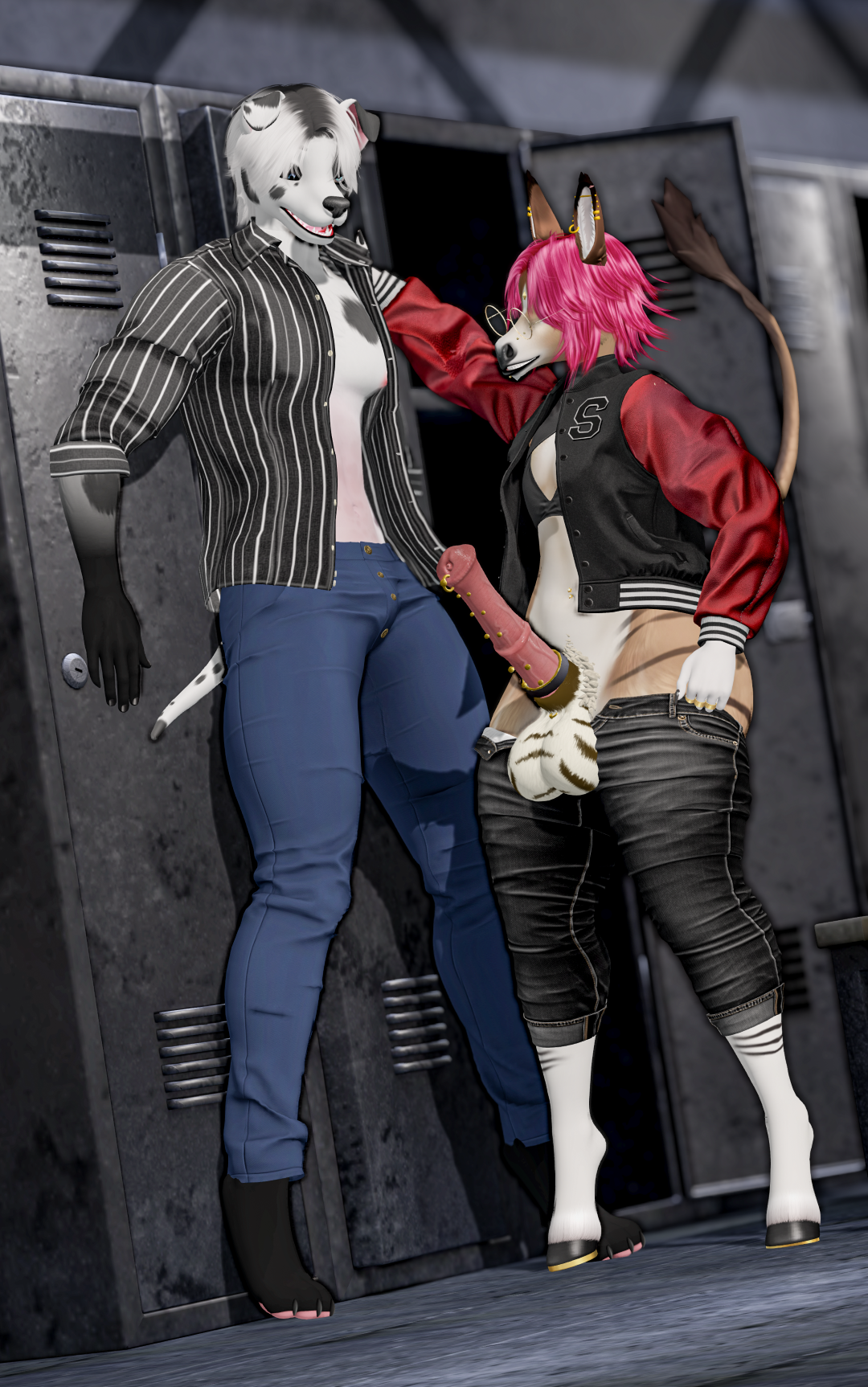 The canine’s own cock spurt soon after, showering the lockers with spunk as the horse held his pose, letting his thick cock empty his load before slowly drawing it out with a pool of cum to follow.